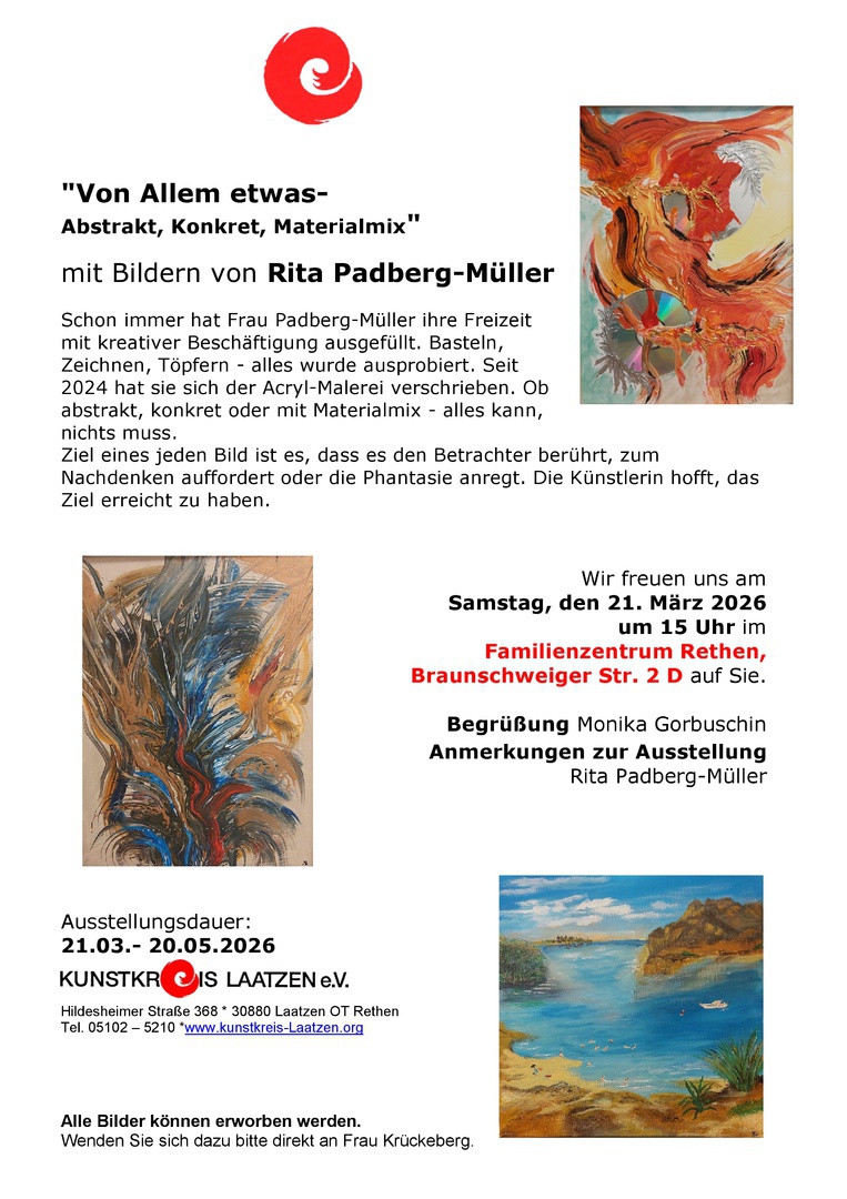 Vom 21.März an können Sie im Familienznetrum eine Ausstellung mit Bildern von Rita Padberg Müller sehen sehen